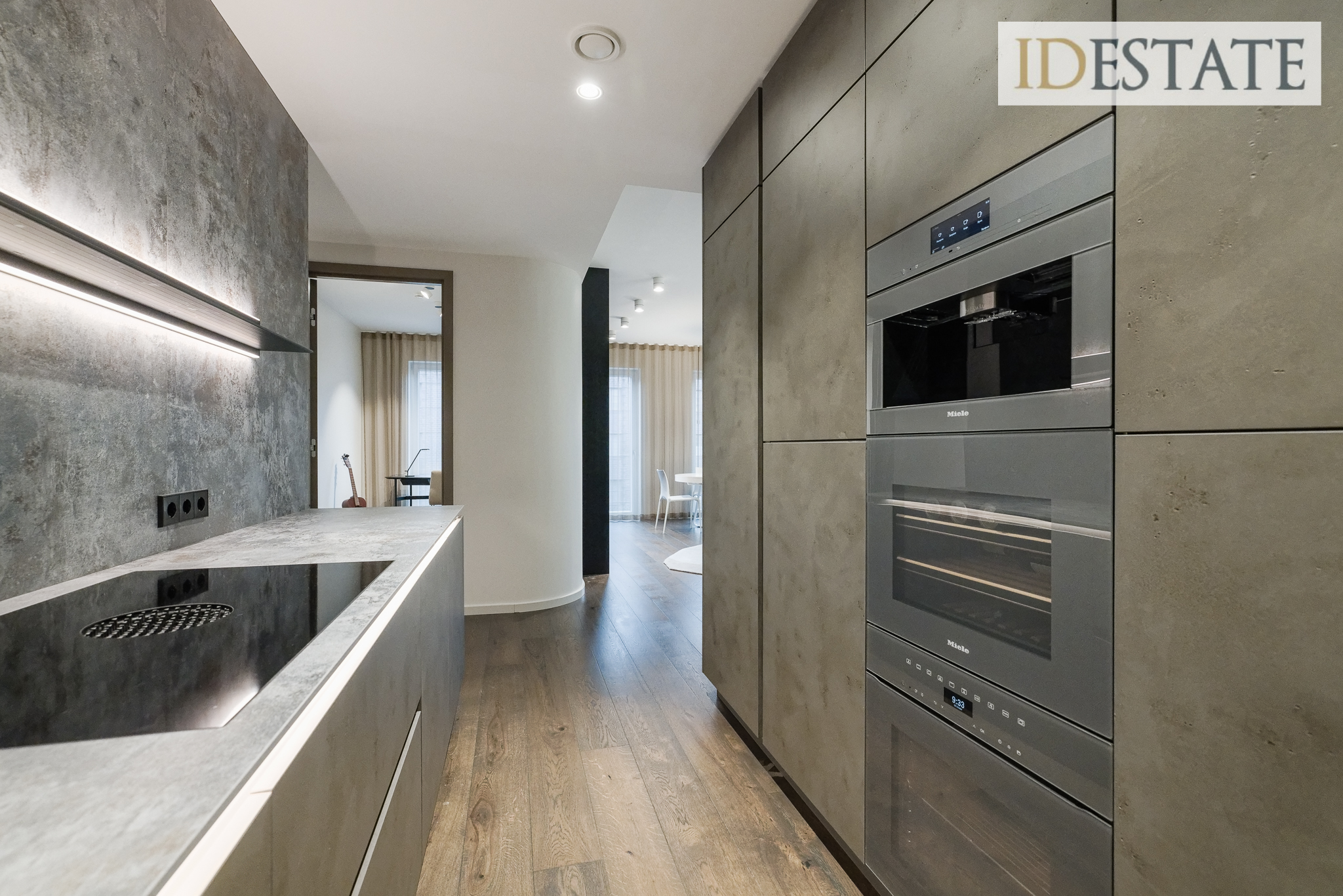 Väiksema magamistoa vastas eraldi nišis asub köök, mis on varustatud integreeritud kõrgekvaliteetse Miele kodutehnikaga.